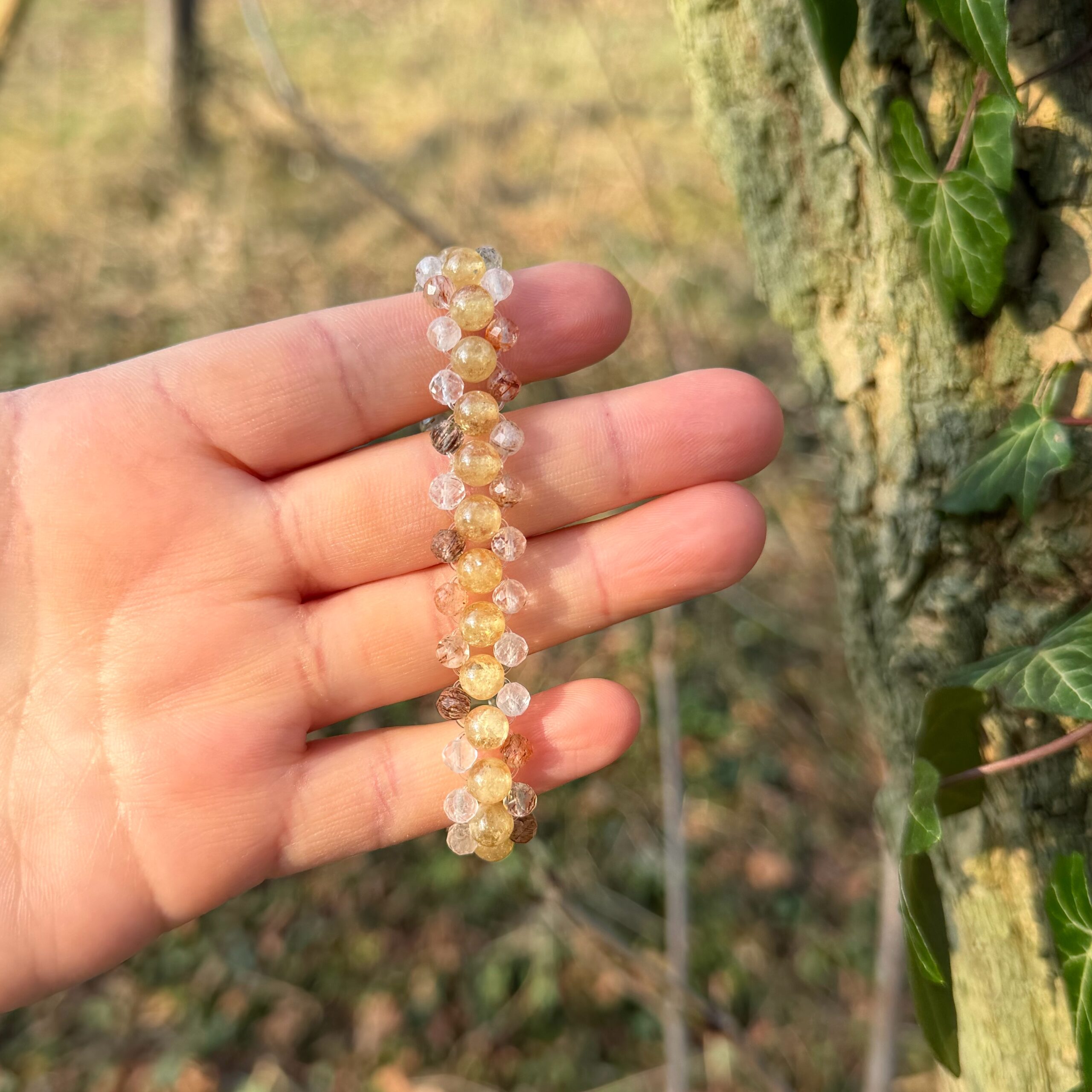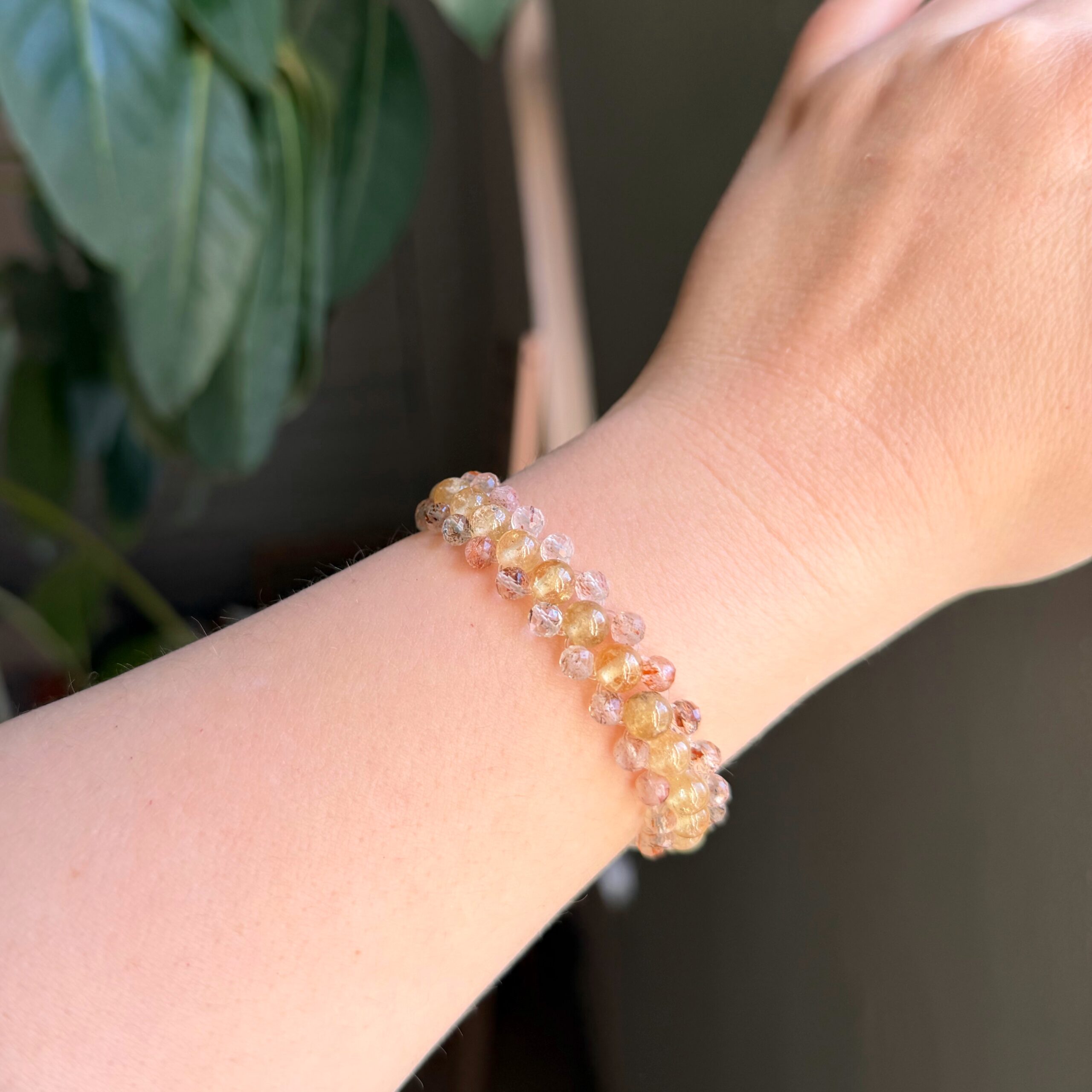 Gelber Granat stärkt Selbstvertrauen, Lebensfreude und Manifestationskraft, während Super Seven für spirituelle Klarheit und energetische Transformation steht. Die feinen, lichtdurchlässigen Steine lassen das Armband lebendig schimmern und verstärken seine hohe Frequenz.