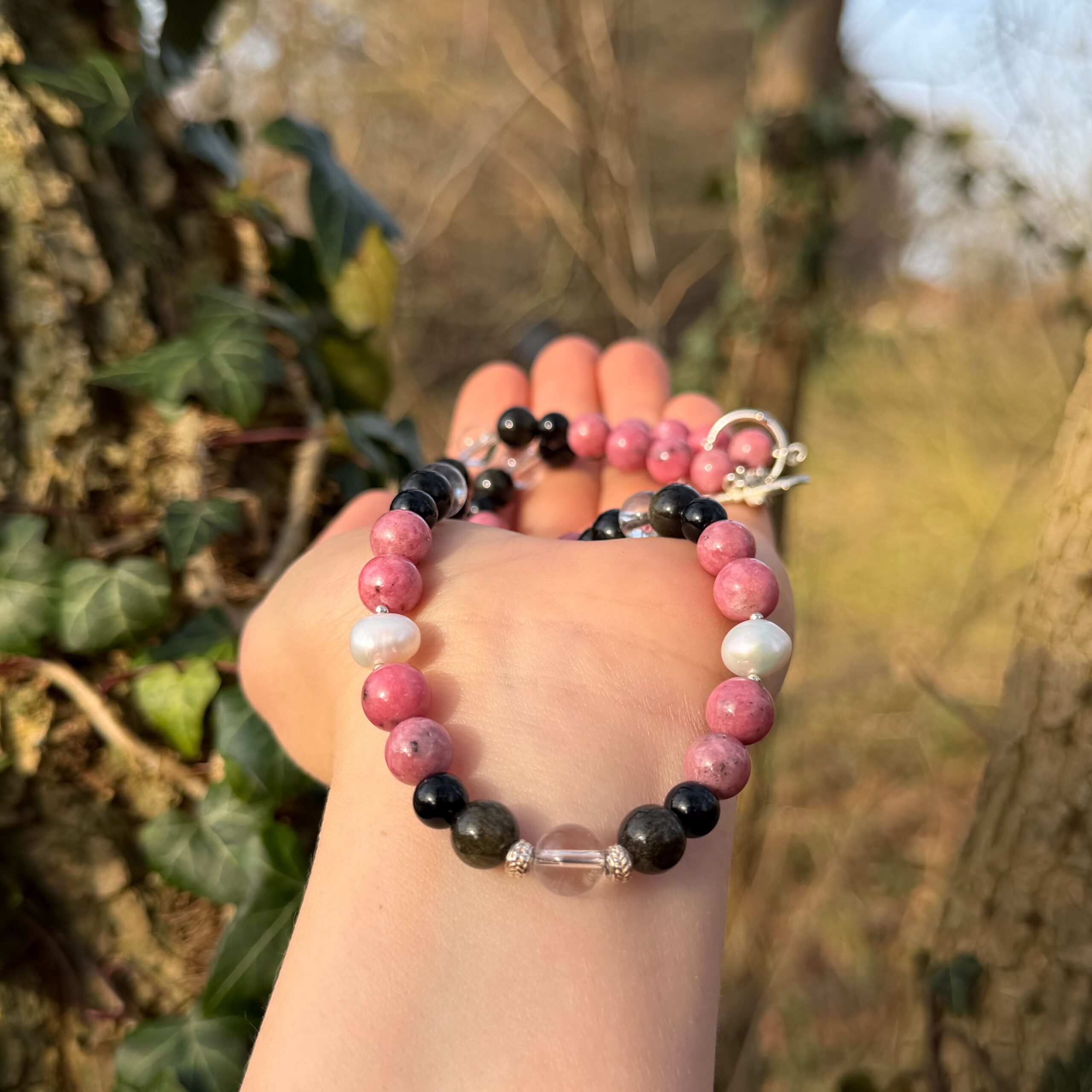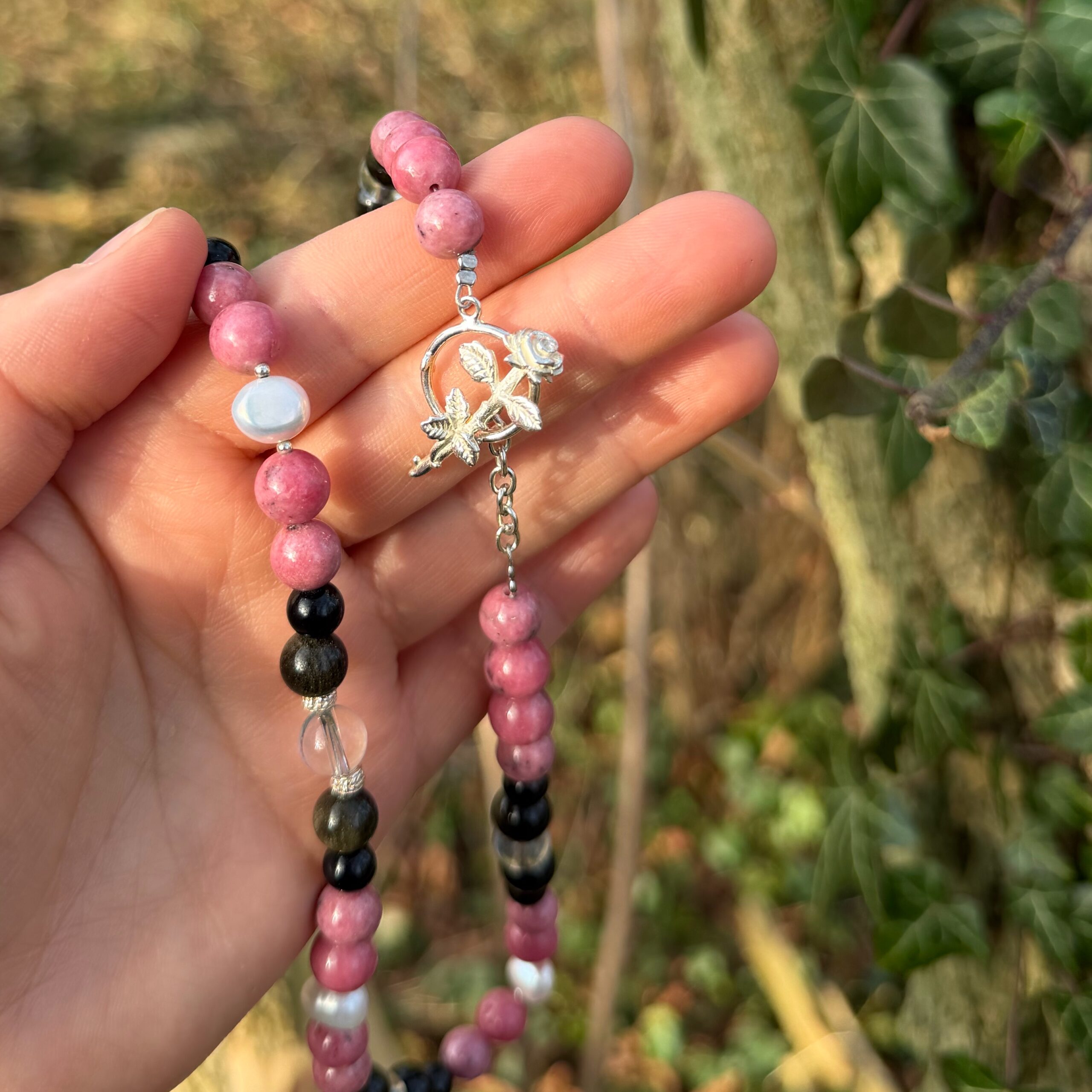 Schreibe die erste Rezension für „Rhodonit • Obsidian • Bergkristall • Perle • 925er Rosenschließe“