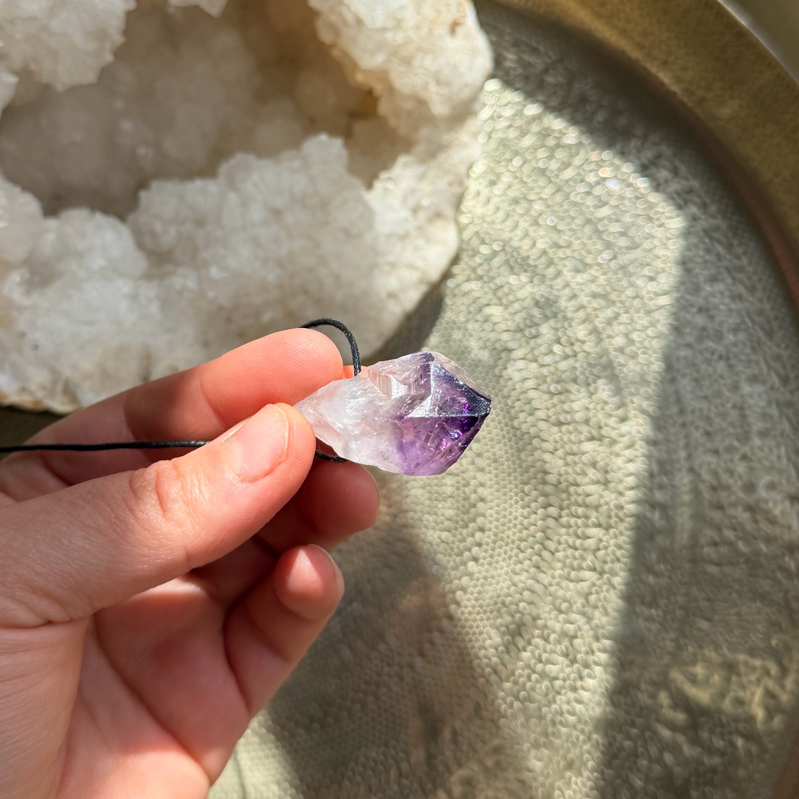 • Der Amethyst besitzt eine unglaublich reinigende und transformierende Kraft und ist in der Lage, dein Aurafeld von negativen Energien zu befreien. Er eignet sich zudem hervorragend als Begleiter während der Meditation, da er dir dabei hilft, zur Ruhe zu kommen und dein Drittes Auge aktiviert.