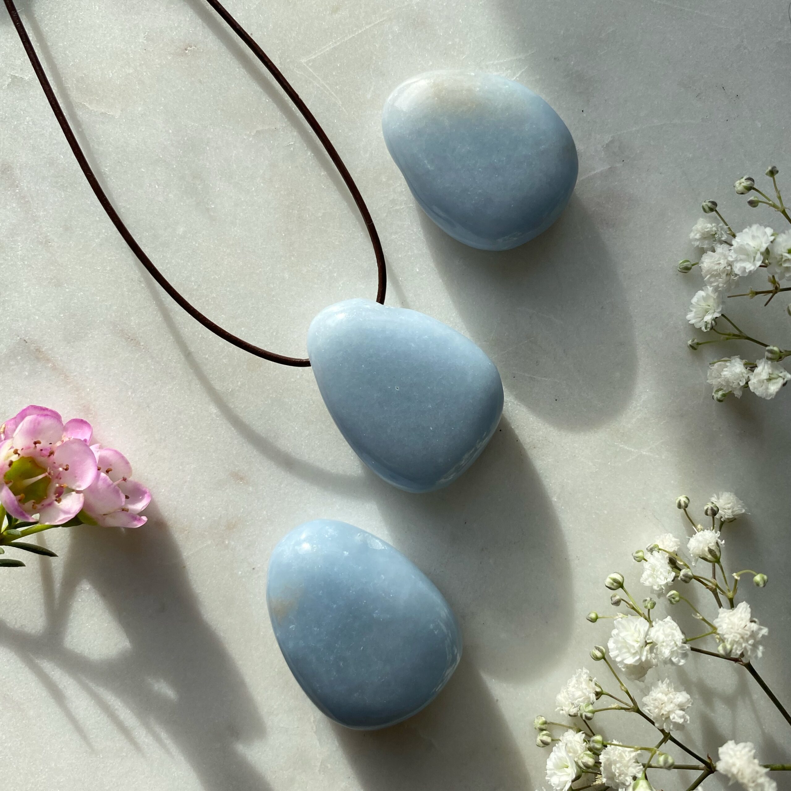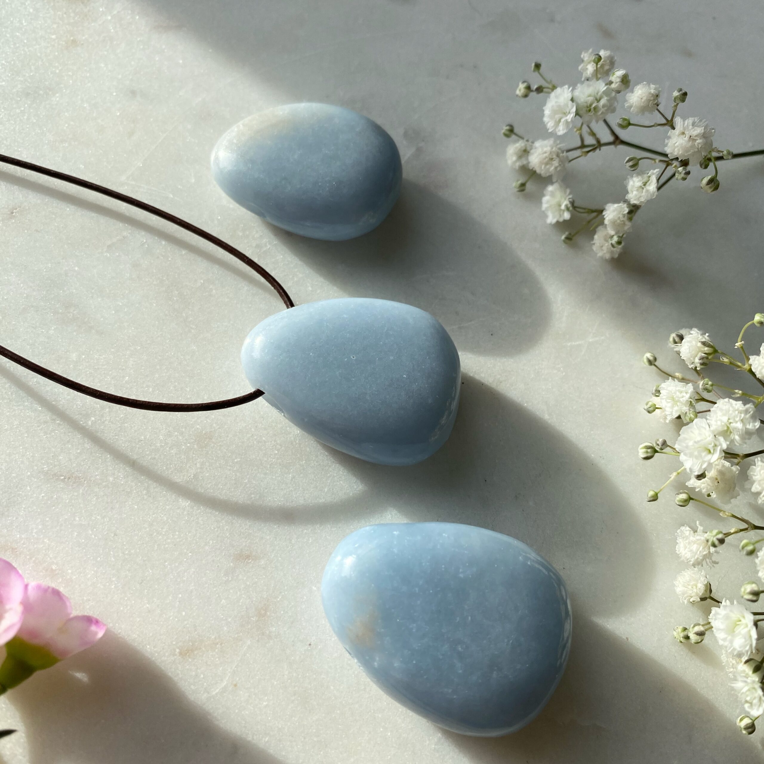 Jeder Angelit ist ein absolutes Unikat und ich wähle deinen Stein intuitiv für dich aus. Maserung und Farbintensität deines Steines können von den Bildern abweichen.