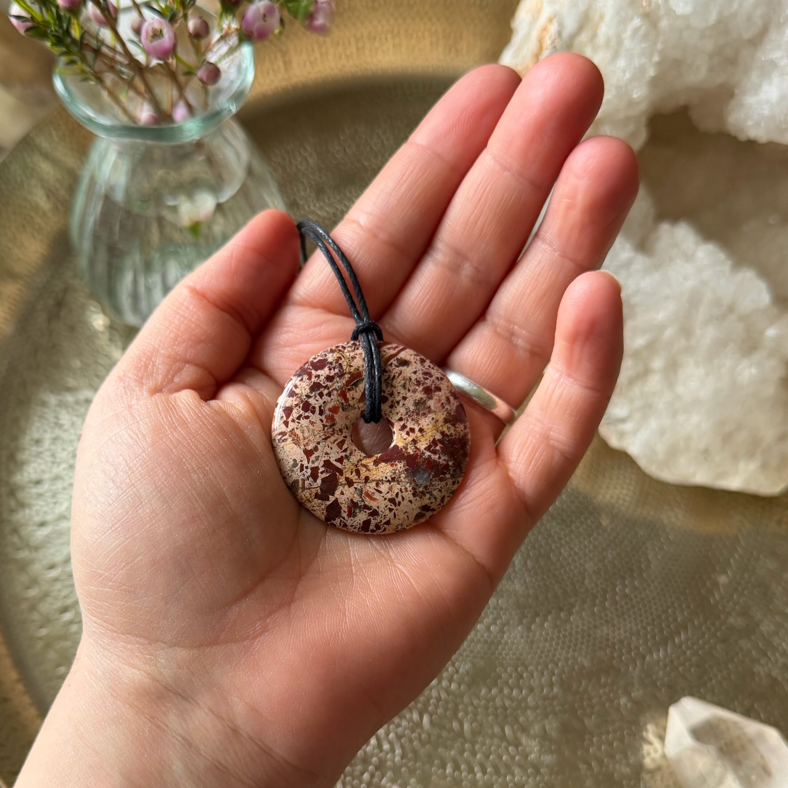 MERKABA Kette mit großer Brekzien Jaspis Scheibe · UNIKAT