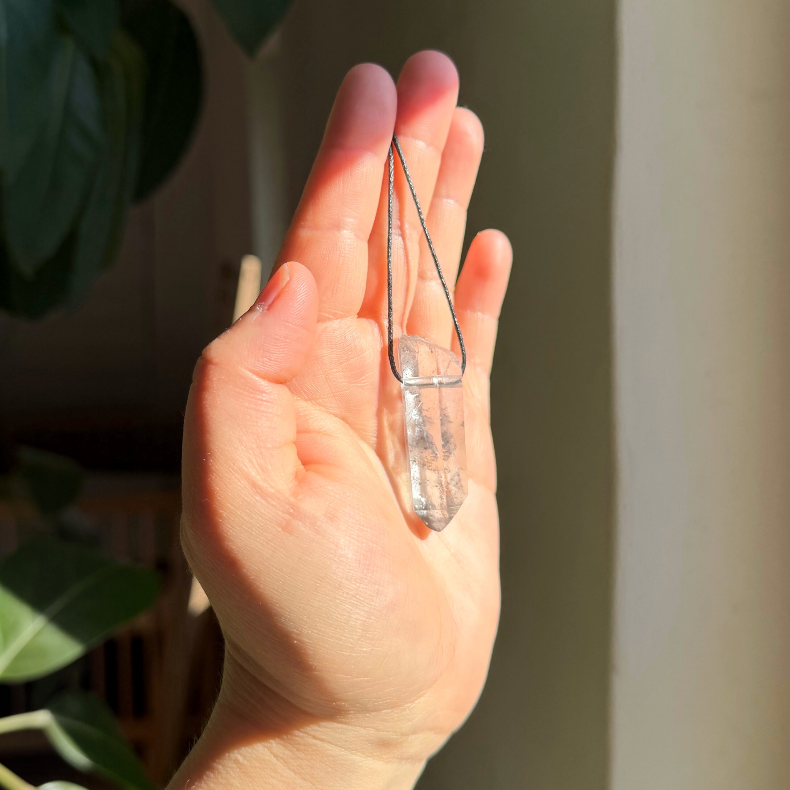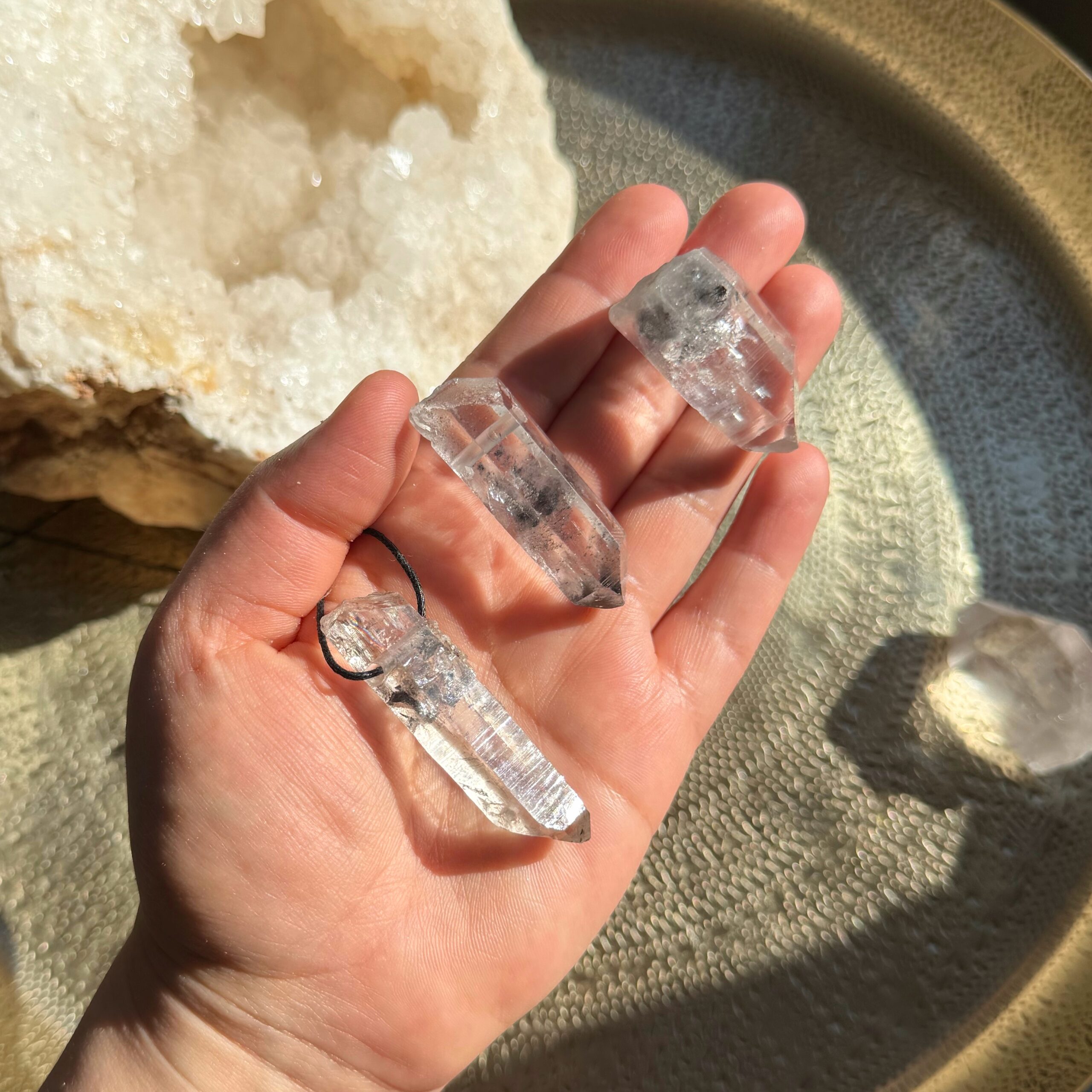 Diese Kette mit natürlich gewachsenem Bergkristall Inklusionsquarz ist ein faszinierendes Unikat. Jeder Kristall trägt feine, natürliche Einschlüsse, die wie kleine innere Landschaften wirken. Sie verbindet die Klarheit des Bergkristalls mit der Tiefe und Individualität der eingeschlossenen Strukturen. Bergkristall steht für Bewusstsein, innere Klarheit und das Erkennen deiner eigenen vielschichtigen Wahrheit.