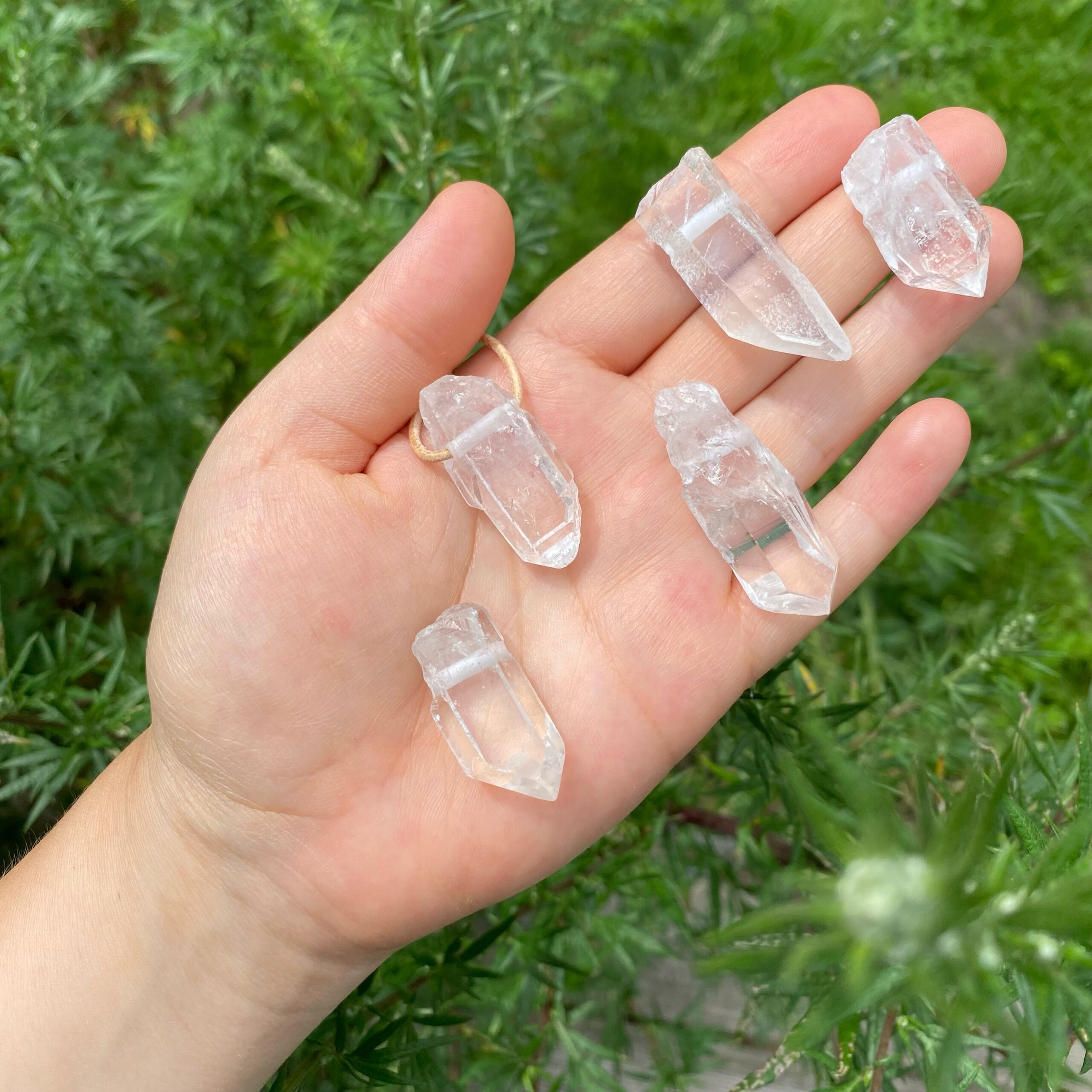 Natürliche Bergkristall Naturspitze an einem zarten Lederband für Klarheit, Schöpferkraft und ein positives Mindest. Bergkristall ist ein wahrer Allrounder, der dich den ganzen Tag über mit Energie versorgt und dich stets darin unterstützt, zu deiner wahren, authentischen Kraft zu finden. Die feinen Bergkristallspitzen sind besonders klar und bis auf die Bohrung komplett unbehandelt.