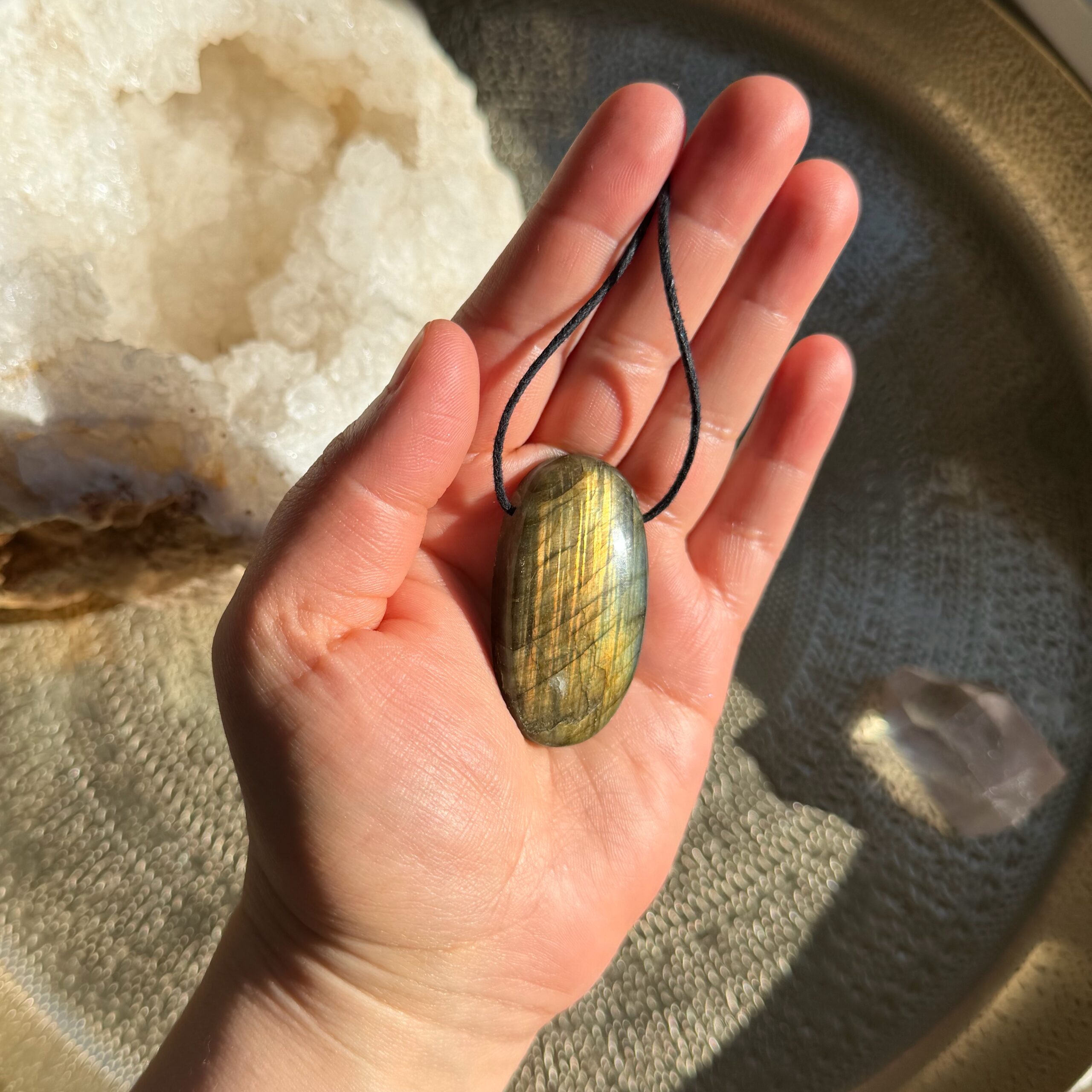 Labradorit wirkt wie ein energetischer Schutzmantel und unterstützt dich dabei, dich wieder mit deiner eigenen Magie zu verbinden.