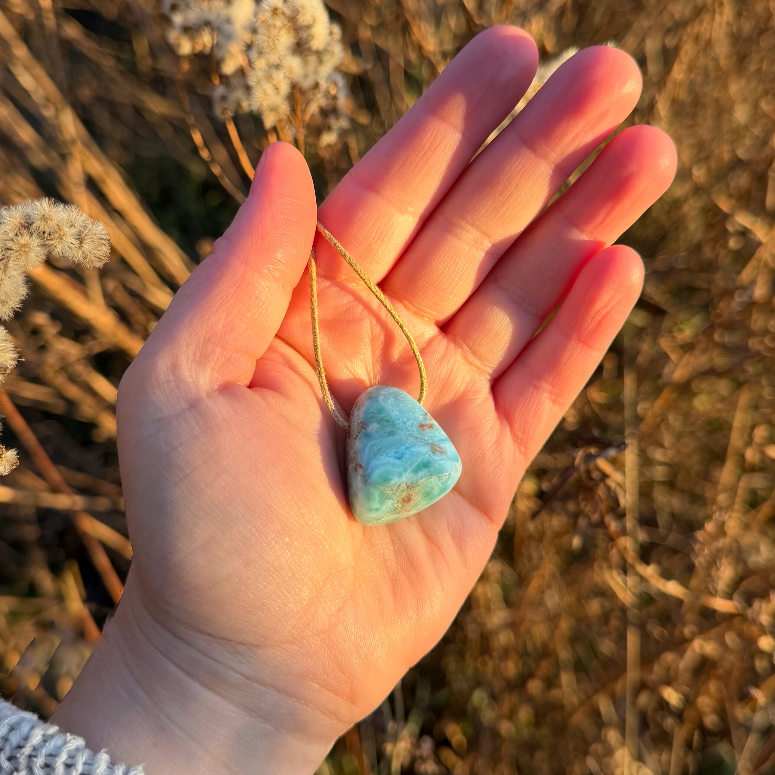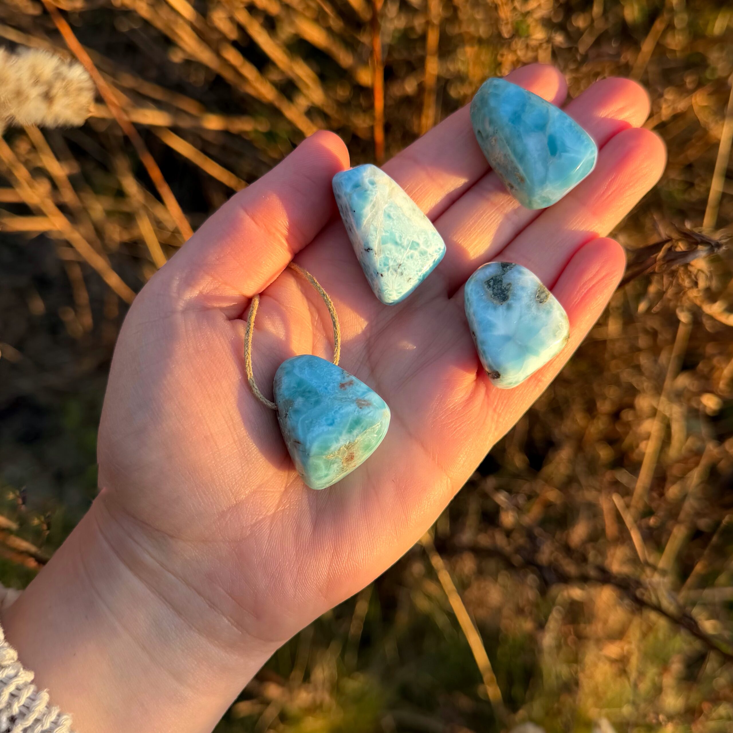 • Jeder Larimar ist ein von der Natur geschaffenes Unikat und ich wähle deinen Stein intuitiv für dich aus. Größe, Farbe und Maserung sind individuell und können von den Bildern leicht abweichen.