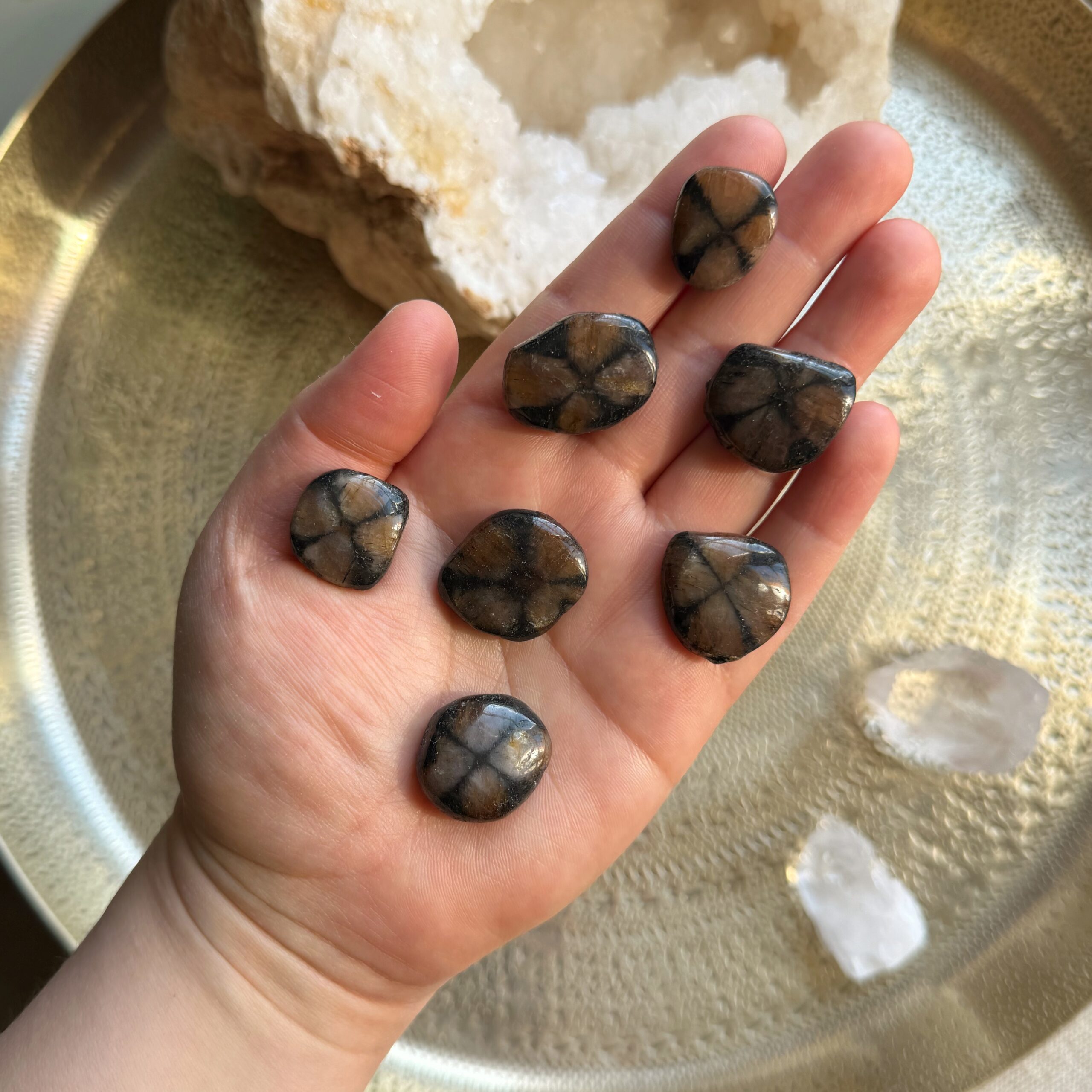 Jeder Stein wird intuitiv für dich ausgewählt, mit einzigartiger Kreuzzeichnung und individueller Ausstrahlung.