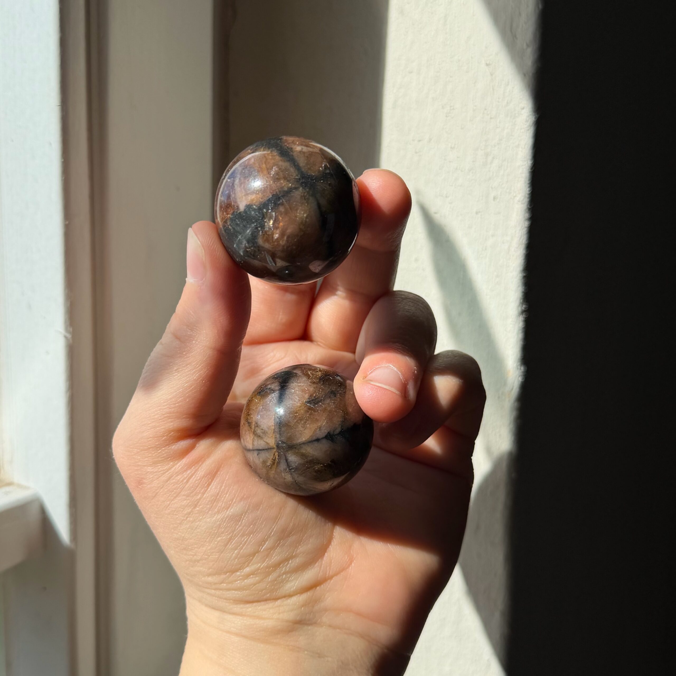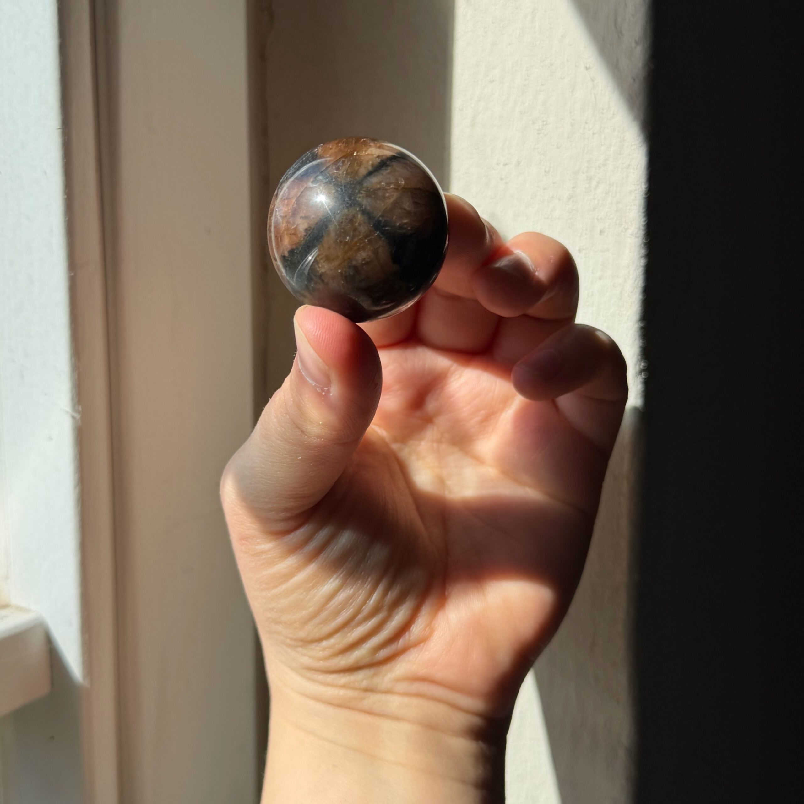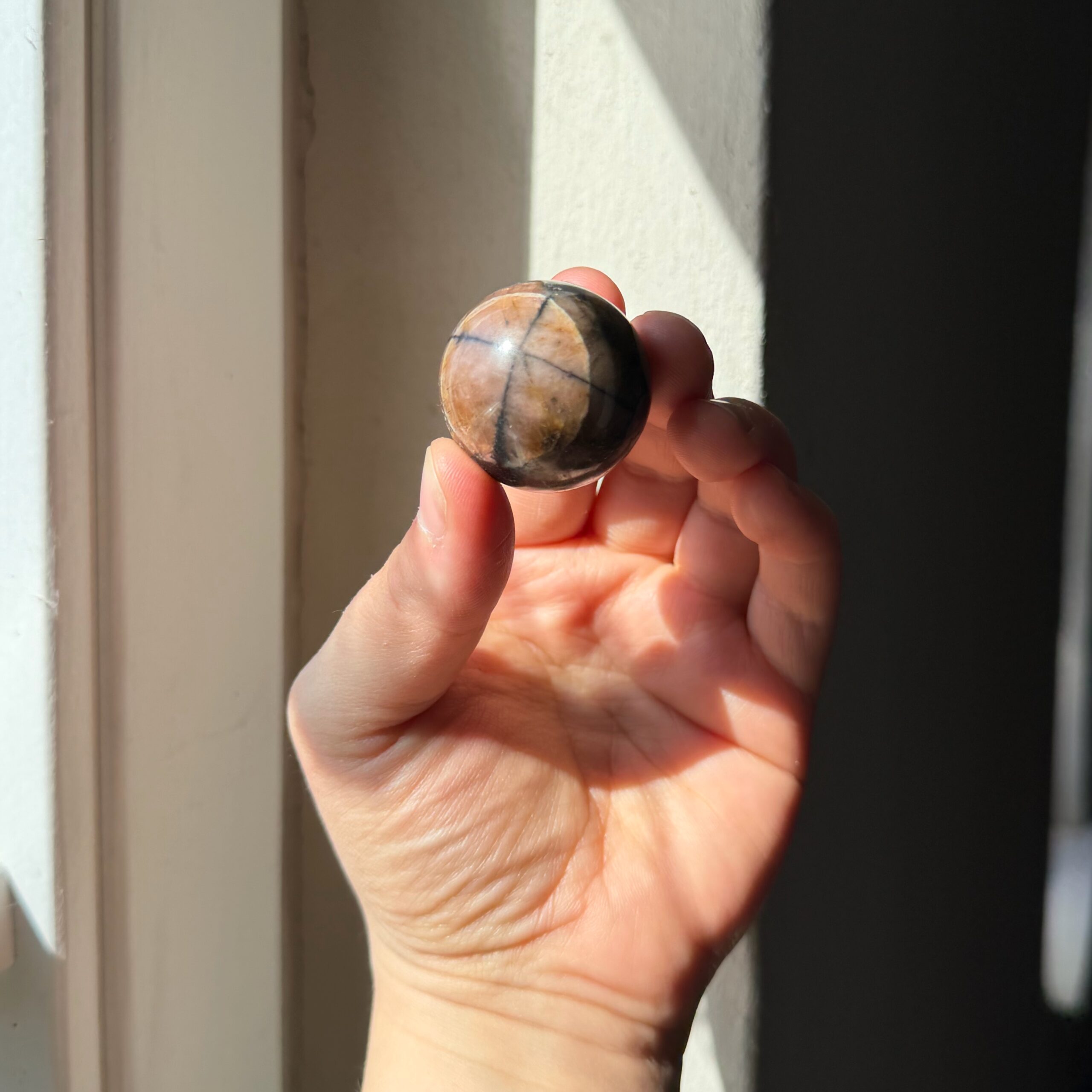 Diese Chiastolith Kugel trägt die uralte Kraft der Erdung und inneren Ausrichtung in sich. Ihre natürlich gewachsene Kreuzstruktur erinnert dich daran, dich immer wieder mit deinem inneren Zentrum zu verbinden.
