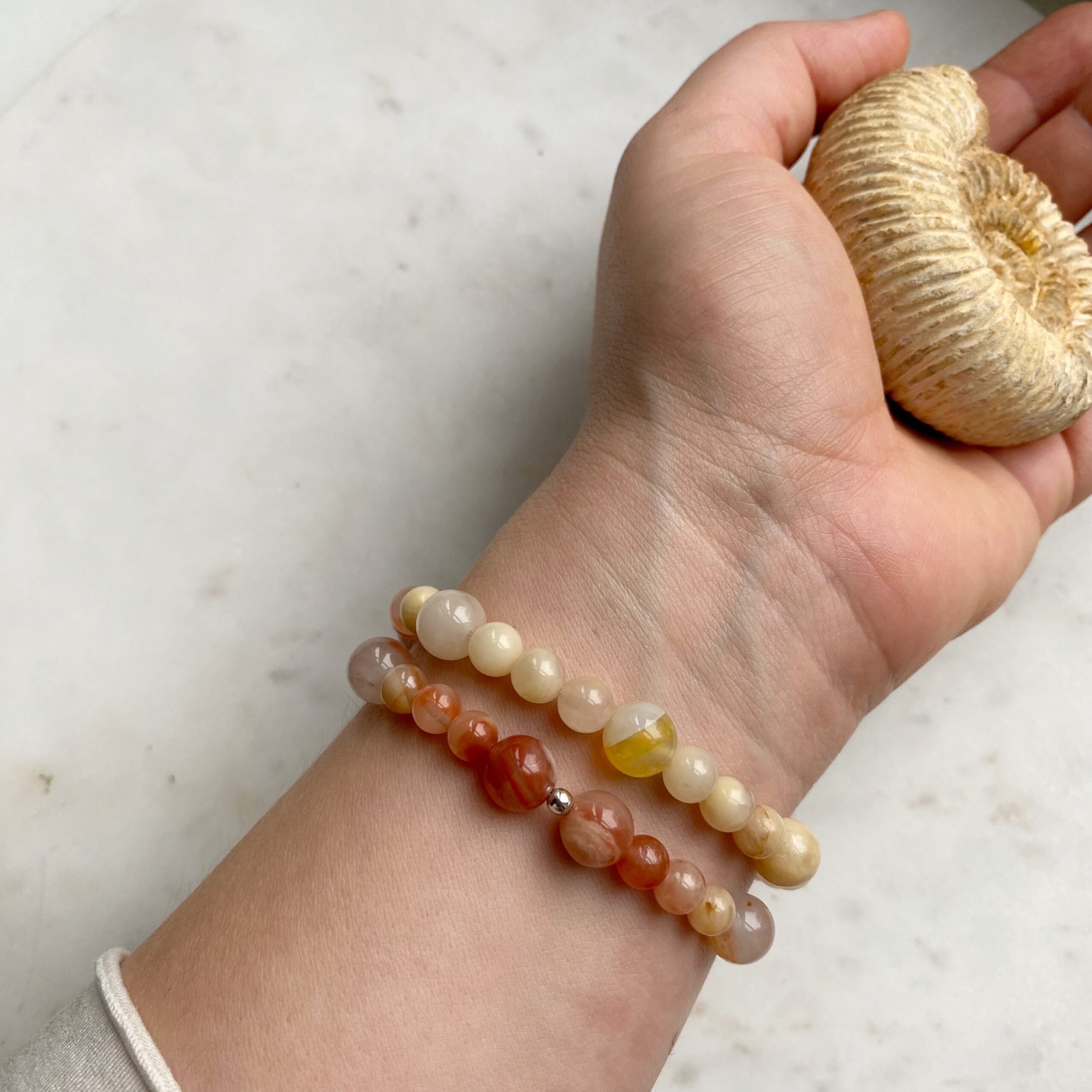 Schreibe die erste Rezension für „Naturkarneol Armband mit Farbverlauf · handgefertigt“