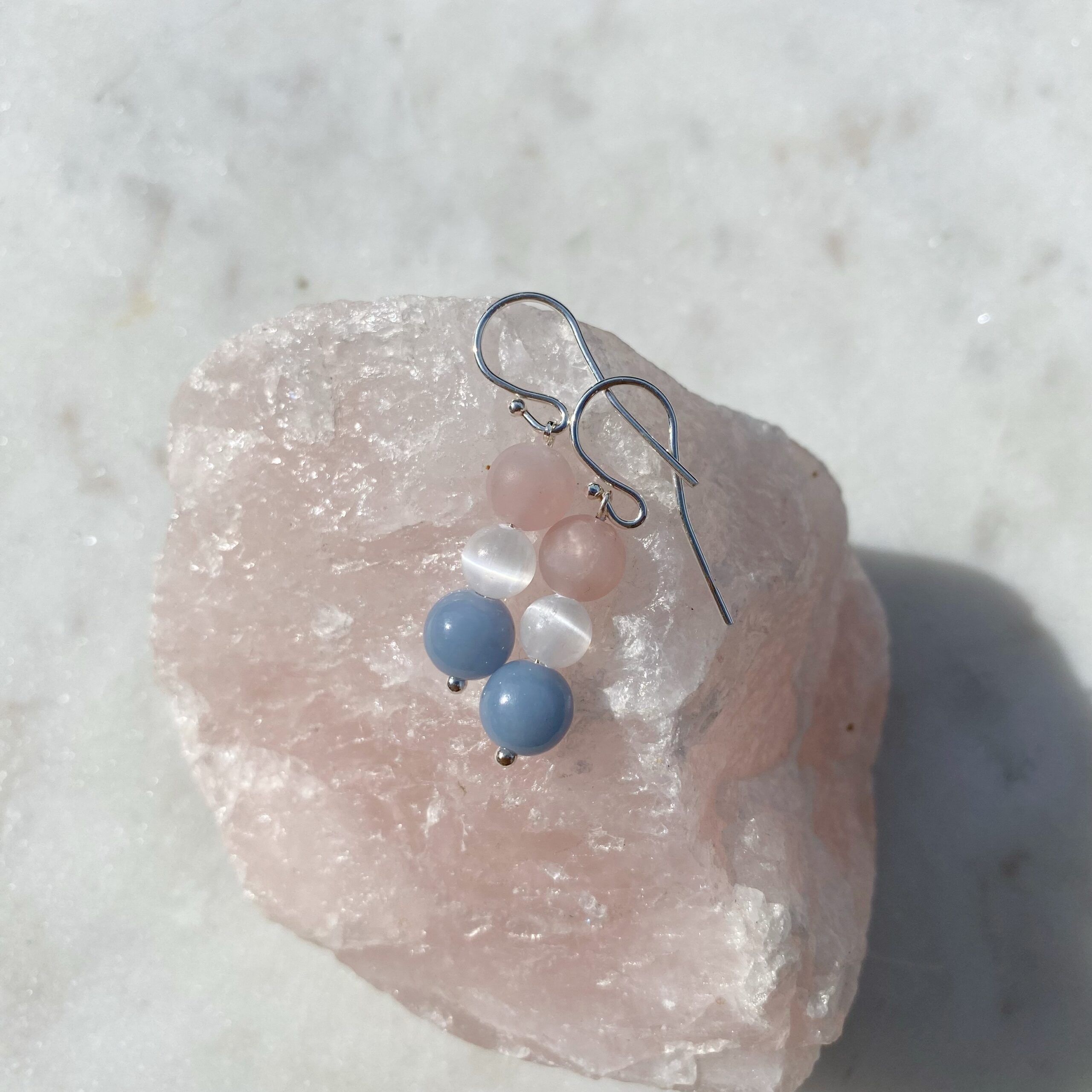 HIMMELSGÖTTIN Ohrhänger Angelit · Selenit · Rosenquarz