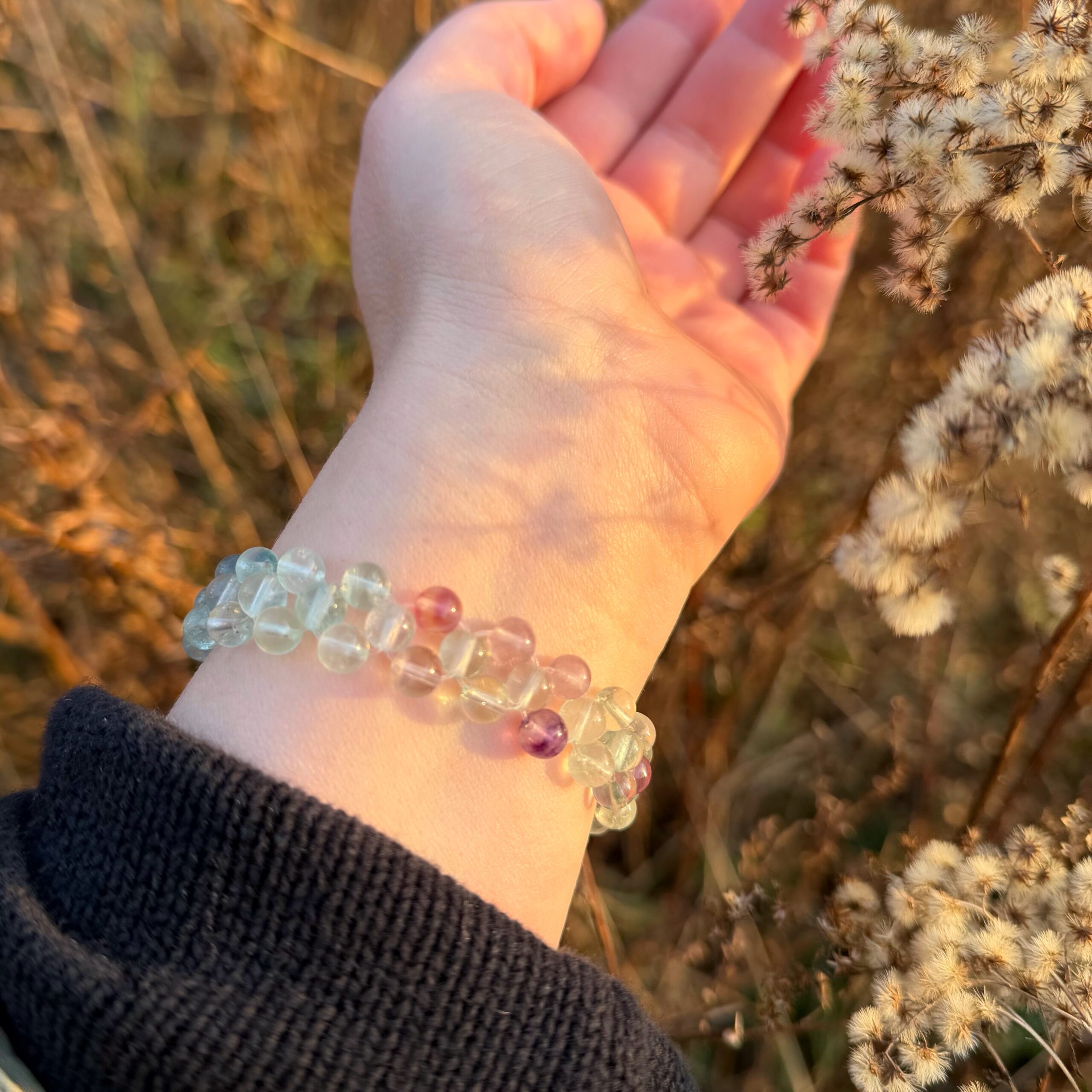 Dieses Armband vereint die sanfte Kraft von Regenbogenfluorit mit einem liebevoll und stabil geknüpften Band. Jeder Fluorit wurde achtsam ausgewählt und harmonisch in das Design eingebunden, sodass ein Schmuckstück entsteht, das nicht nur schön aussieht, sondern sich auch bewusst und getragen anfühlt.