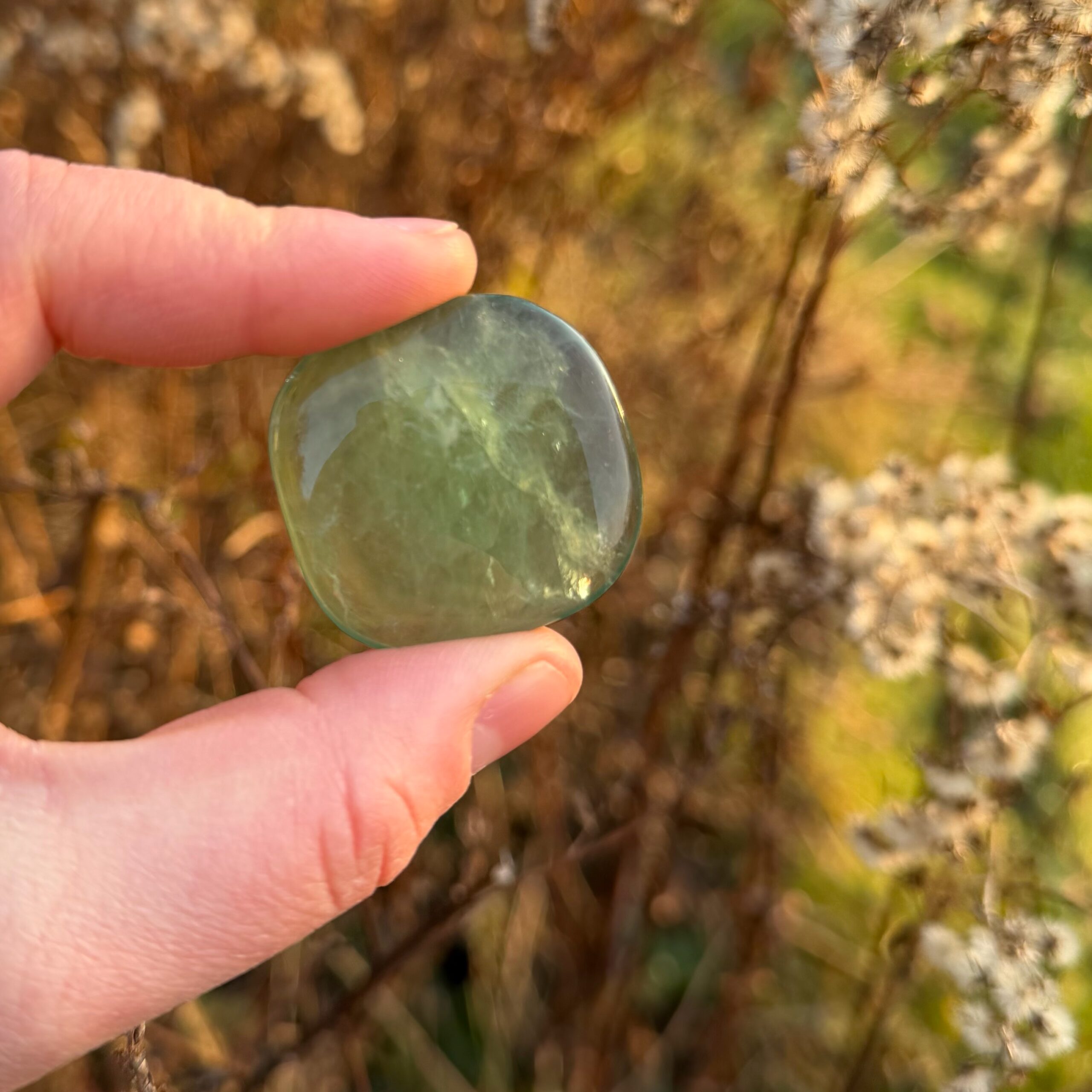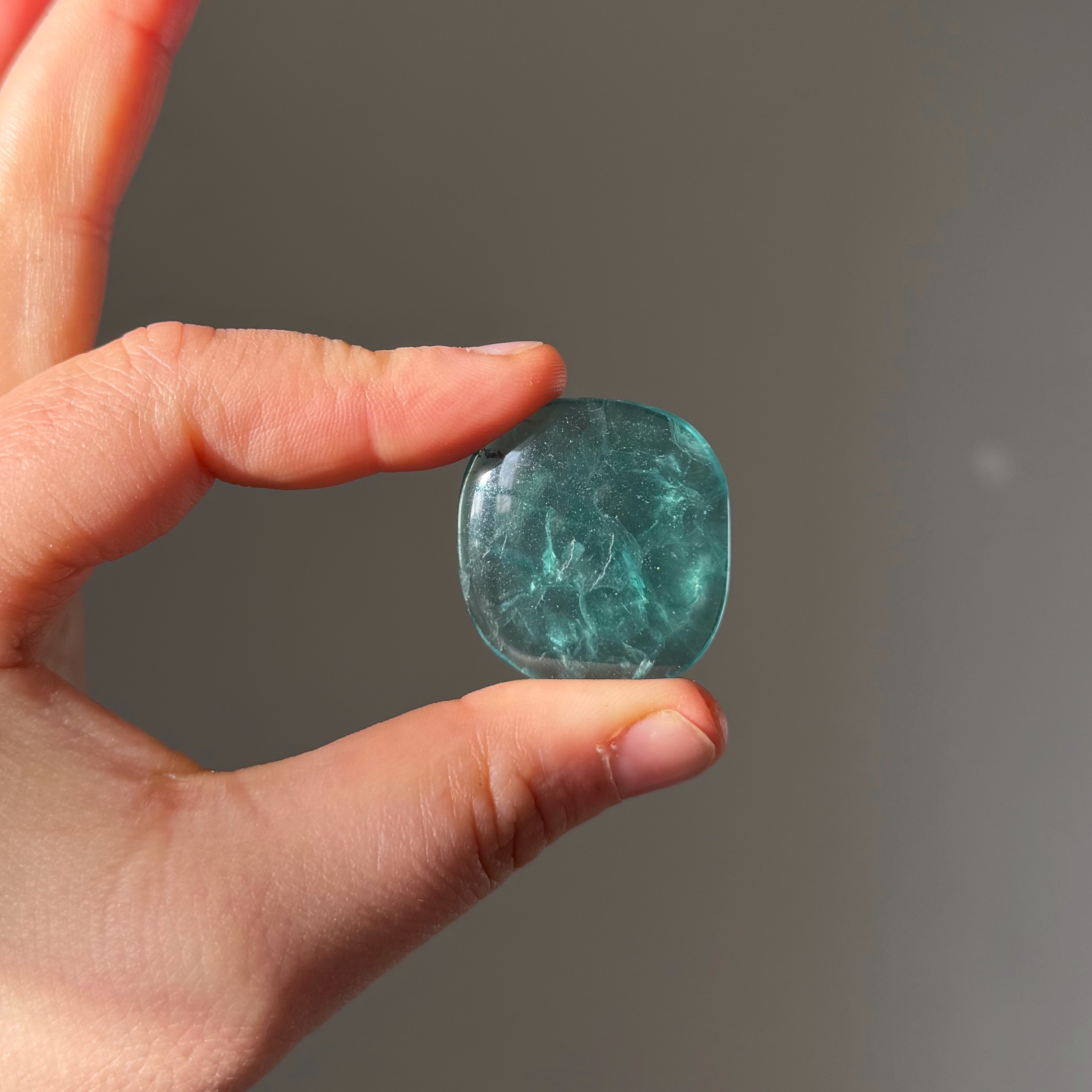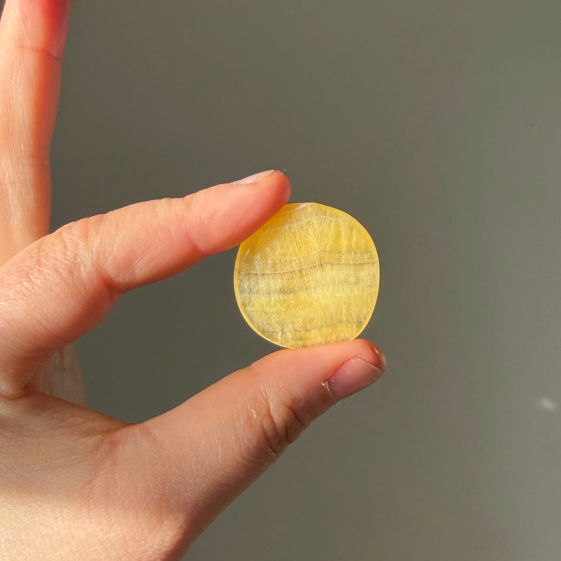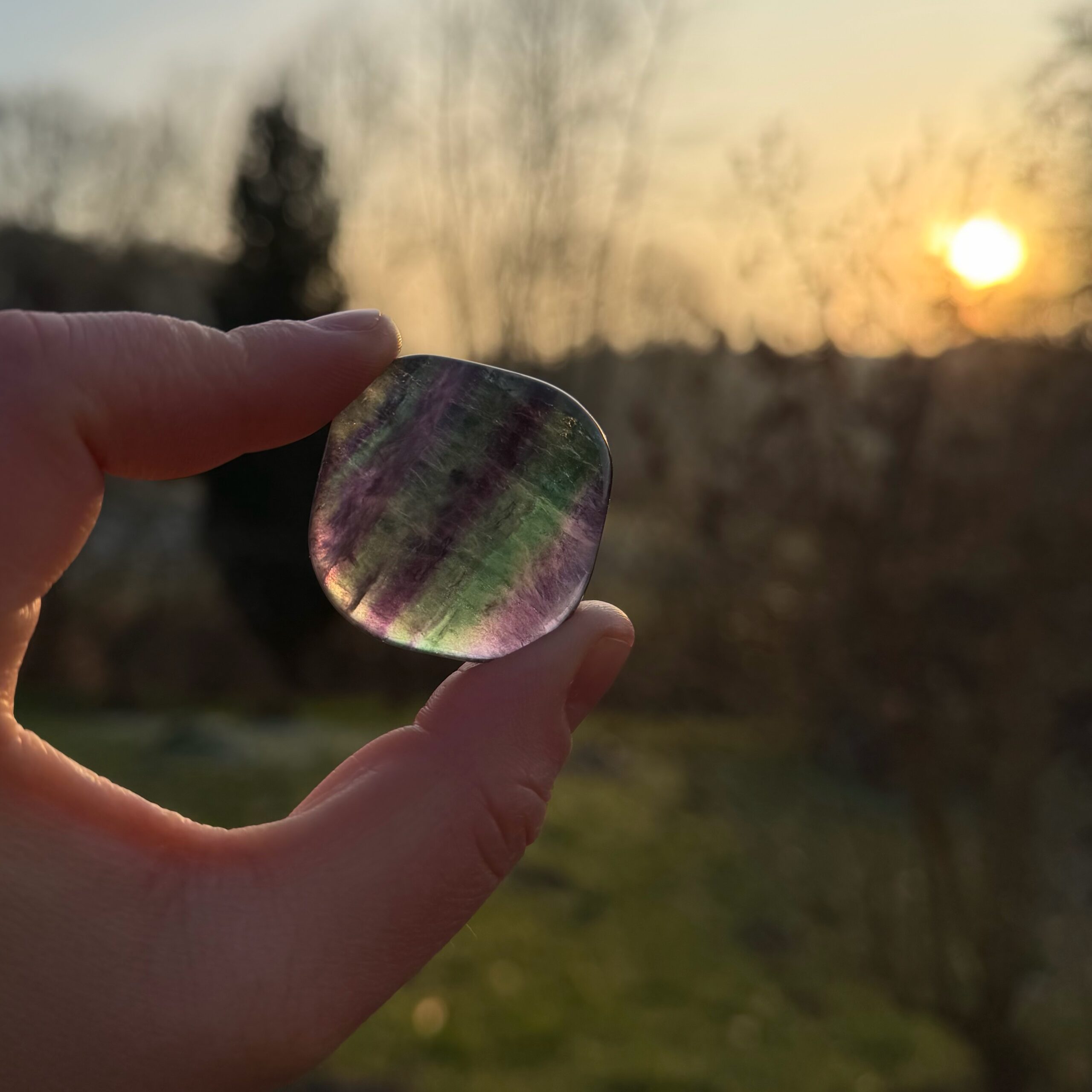 Diese sanft geschliffenen Regenbogenfluorit Scheibensteine vereinen meist mehrere Farben in einem Stein: von klarem Grün über Violett bis hin zu zarten, lichtdurchlässigen Übergängen. Jeder Stein ist ein Unikat und trägt seine ganz eigene Zeichnung, Tiefe und Ausstrahlung.