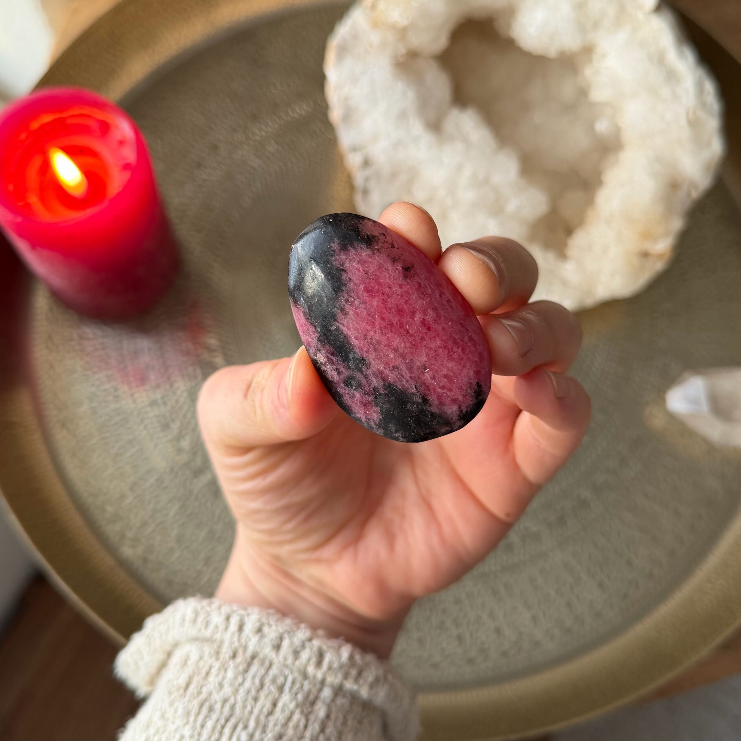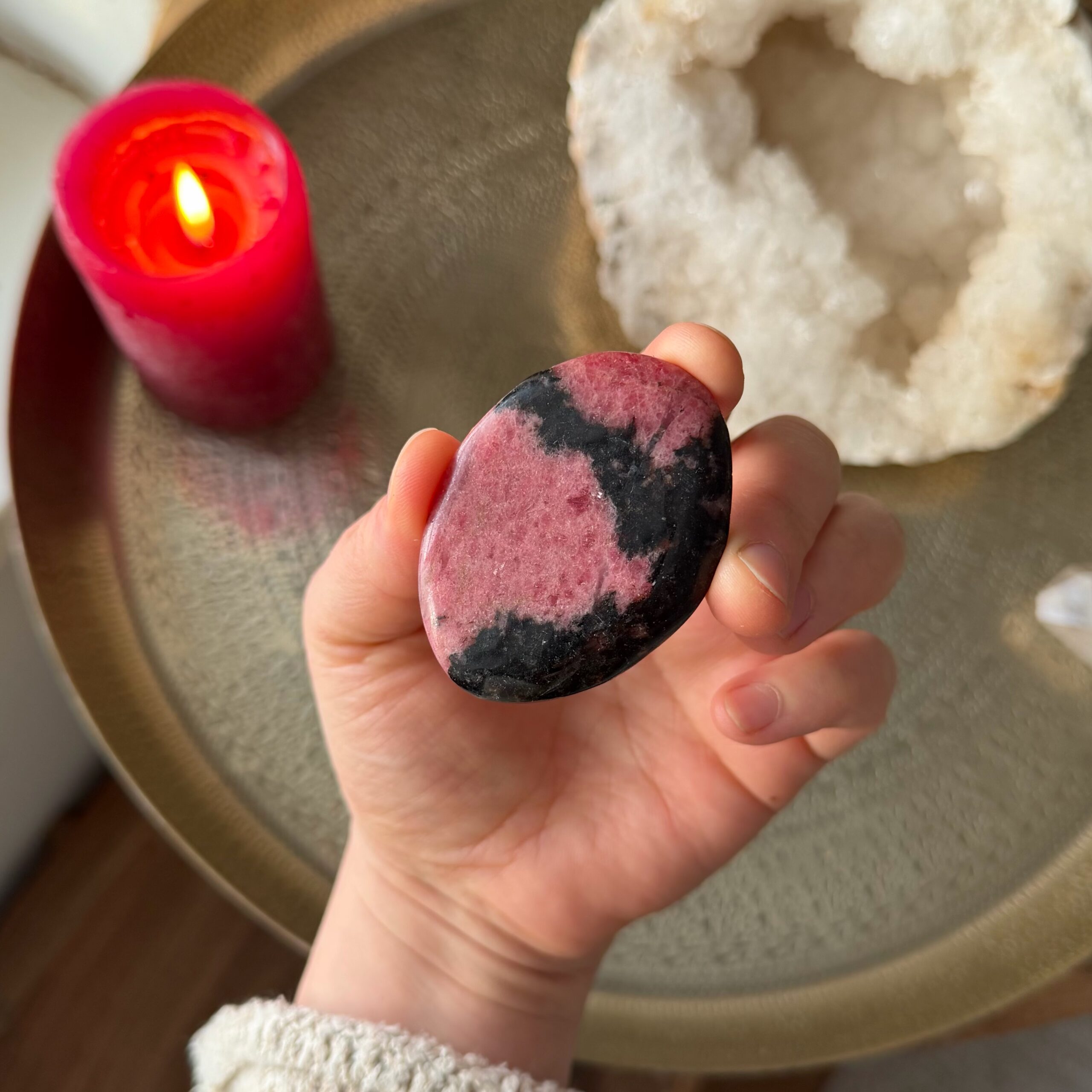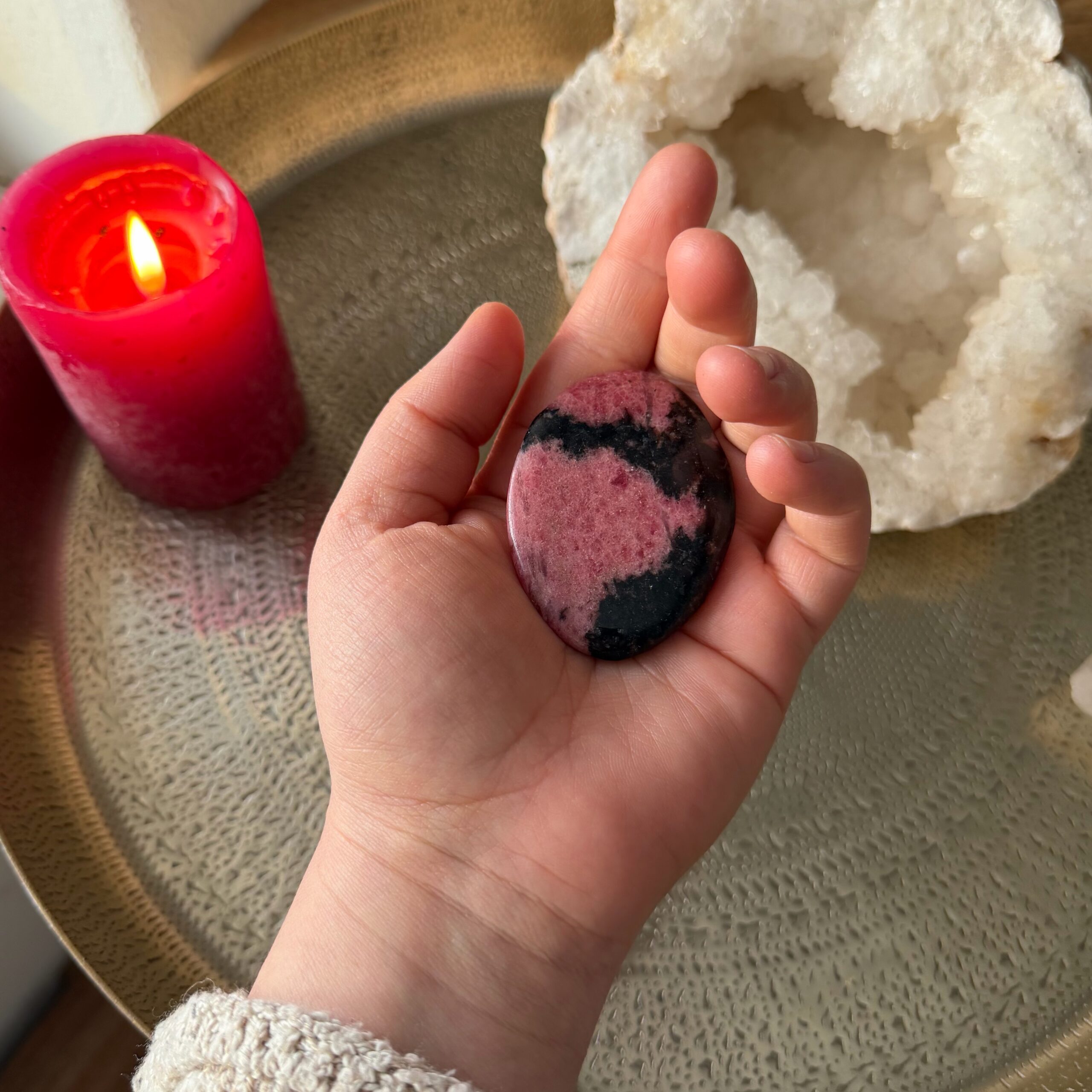 Rhodonit ist ein Stein des Herzens, der Vergebung, Heilung und Ganzwerdung fördert. Seine intensive Rosafärbung mit dunklen Einschlüssen erinnert daran, dass Heilung nicht bedeutet, Schatten zu verdrängen, sondern sie liebevoll zu integrieren.
